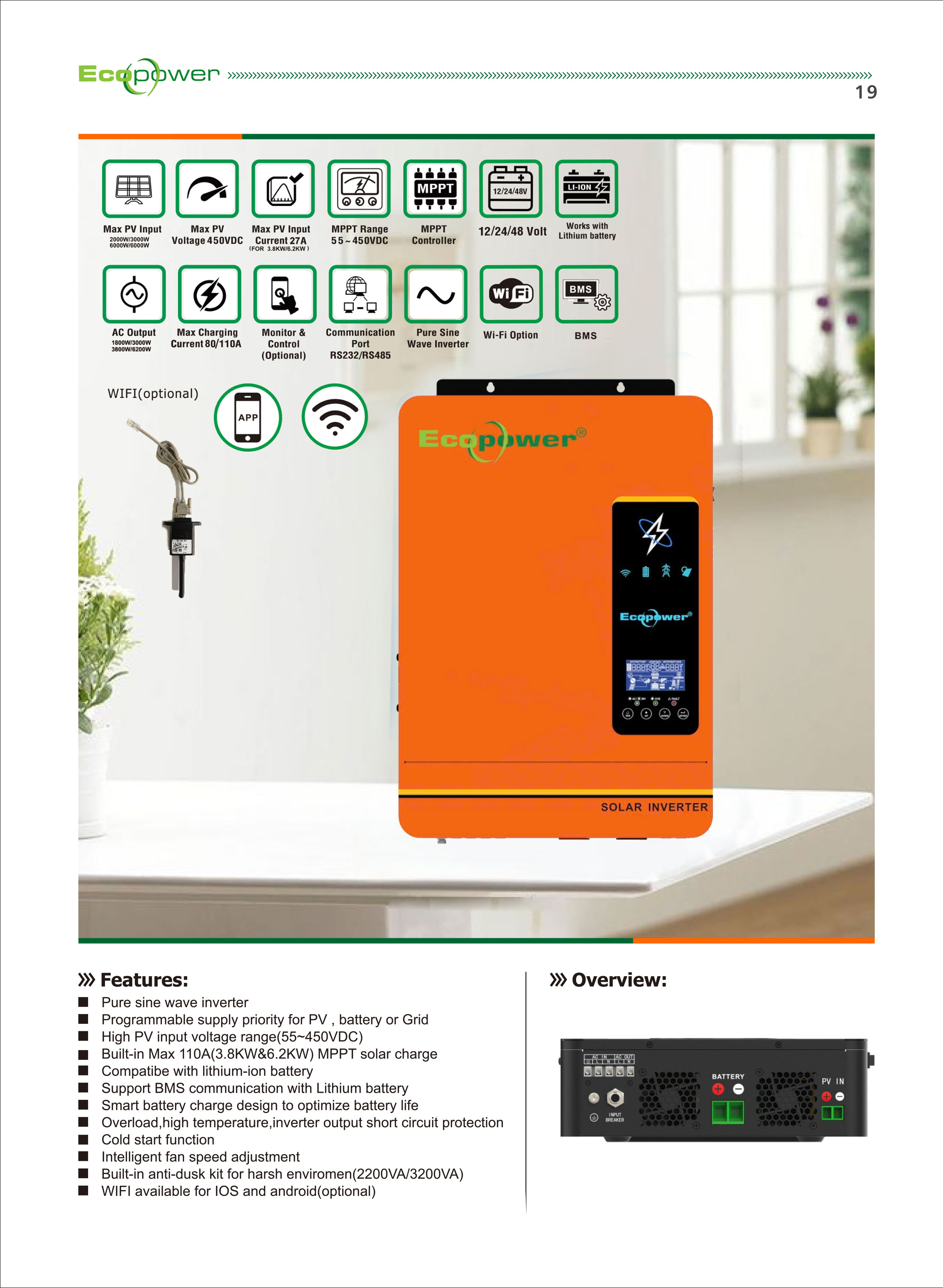 Tính năng Inverter độc lập Ecopower 24V-3.8KW (EP-4200)