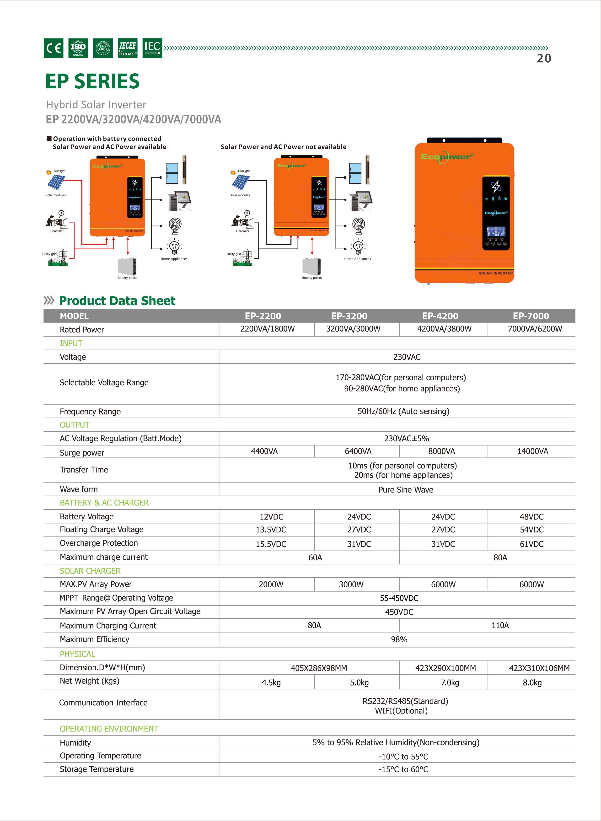 Thông số kỹ thuật Inverter độc lập Ecopower 24V-3.8KW (EP-4200)