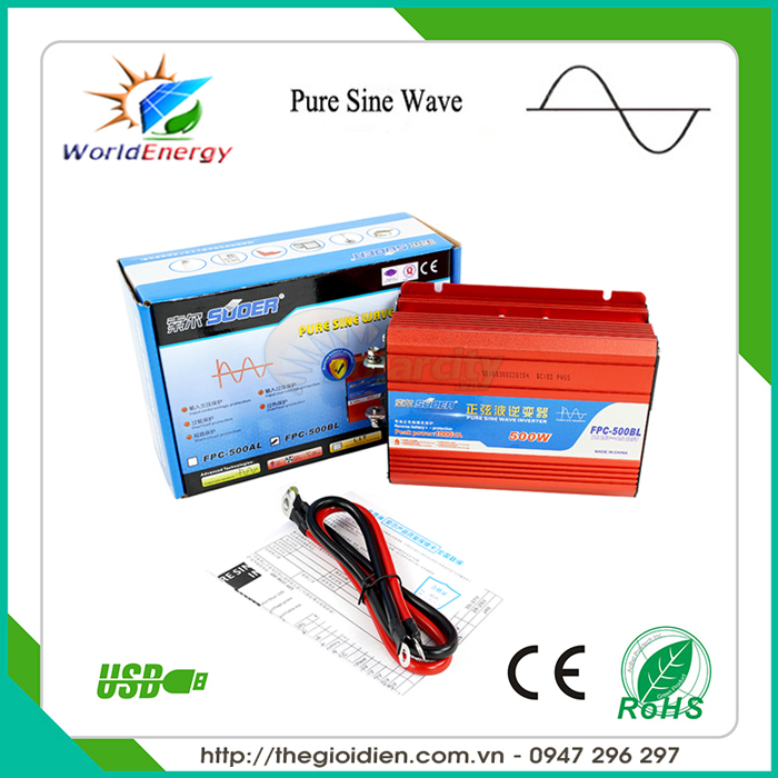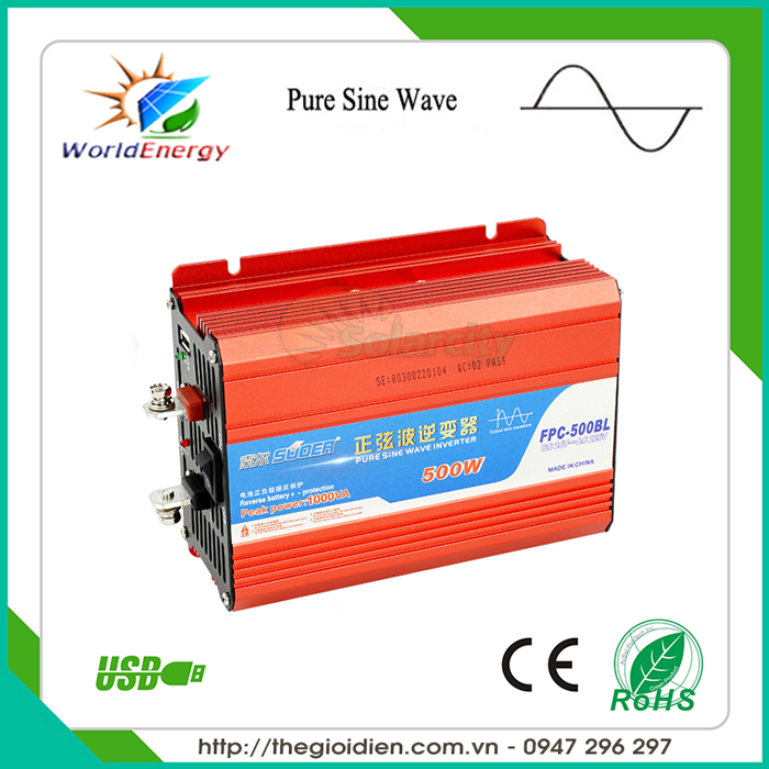 Đặc biệt Máy kích điện sin chuẩn Power Inverter Suoer 500W – 12V